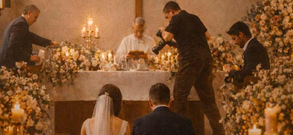 Quando profissionais começam a: subir no altar sem cuidado, andar durante momentos solenes, interferir na cerimônia, colocar equipamentos e objetos sobre o altar… Algo se perde.